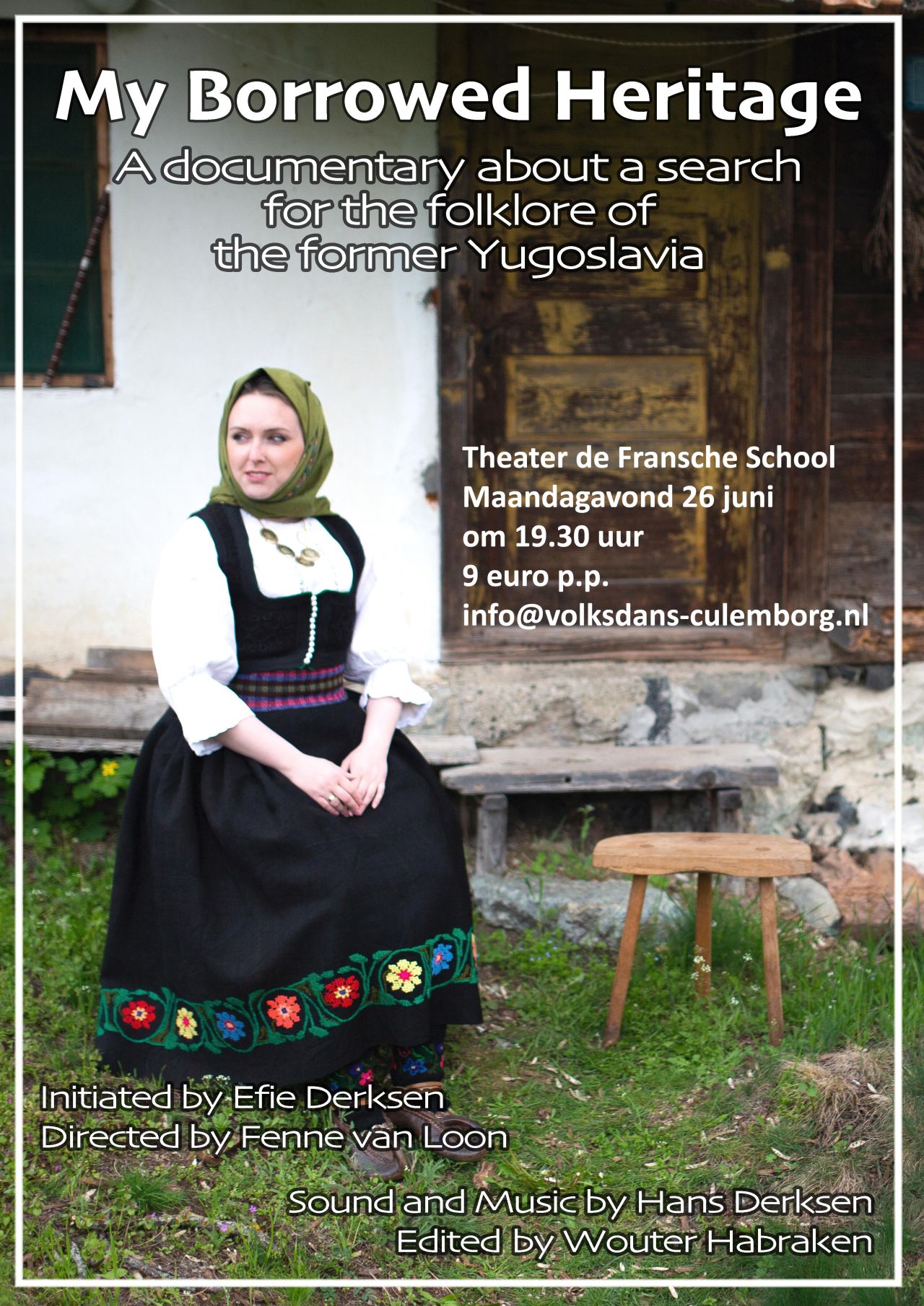 Petra is nl helemaal fan van de dansen uit de Balkan. Laat daar nu een mooie documentaire over zijn gemaakt door Efie Derksen: My Borrowed Heritage, die in het land al veel lovende recensies heeft gekregen. Die film naar Culemborg halen zou wel geweldig zijn en dat is gelukt. Niet alleen voor onze eigen groep, maar door hulp van De Fransche School en het Cultuurfonds Culemborg, ook voor iedereen die interesse heeft in de cultuur en folklore van de Balkan, en Joegoslavië in het bijzonder. Ook heel toepasselijk na de uitgave van de Voetnoot van A.W.K. Voet van Oudheusden over onze volksdansgroep en de geschiedenis van het volksdansen in het algemeen, waarin ook duidelijk wordt dat Joegoslavië heel belangrijk is geweest voor de populariteit van het volksdansen in de jaren 70 en 80.